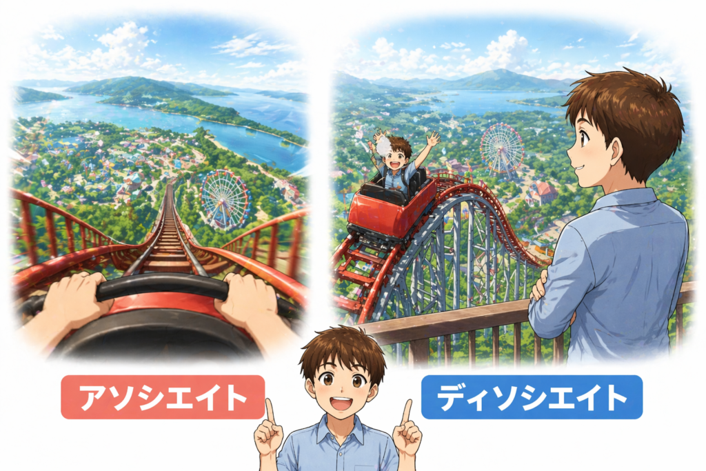 NLPでは前者をアソシエイト(入り込む)、後者をディソシエイト(距離をとる)と呼ぶ。
